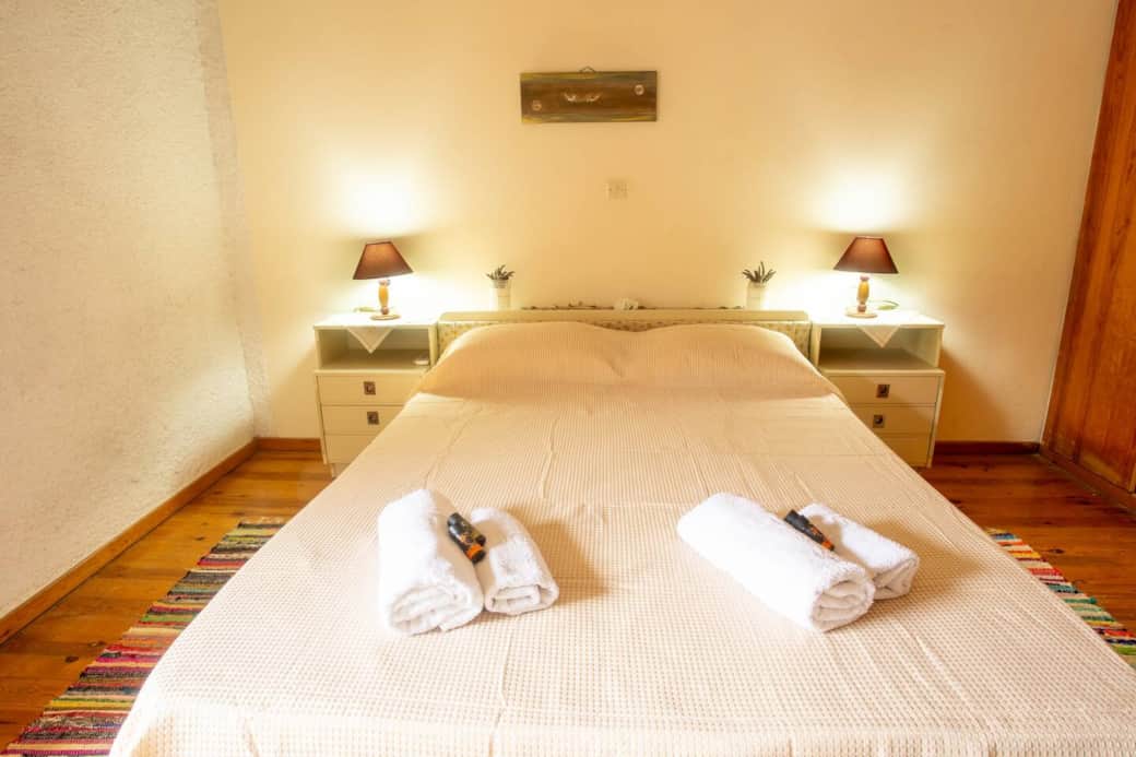Our independent 92m² house offers both space and comfort, accommodating up to seven guests with one double bedroom, a second bedroom with both a double bed and a twin bed, and an open-plan sleeping area on the upper level with two twin beds.